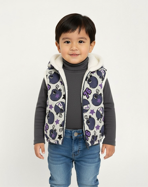 Capture the spirit of sporty style with this insulated, hooded vest from the renowned Korean brand, Malimarihome. Exclusively curated by Bunny's Button, this piece merges playful aesthetics with practical warmth, featuring a dynamic football helmet print and a luxuriously soft fleece lining. An essential SEO-driven layer for transitional seasons, this vest provides core warmth without restricting movement, perfect for active children.