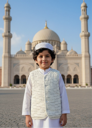 The ivory vest coat is a premium quality piece from a Korean brand. Its cream off-white color is perfect for pairing with Shalwar kameez for Friday prayers. This cozy and trendy waistcoat can also elevate any informal outfit, such as jeans and a shirt. Versatile and stylish.
