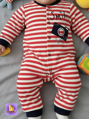Introducing "Little Sailor" Striped Cotton Jumpsuit from premium Korean brand. Made with the highest quality materials, this jumpsuit offers exceptional softness and timeless style for your little one. Perfect for everyday wear or special occasions. Delight your baby and yourself with this charming piece.