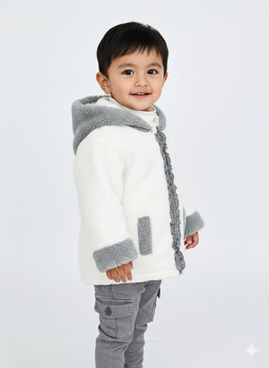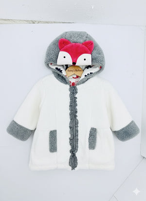 Luxury Toddler Fox Hooded Winter Coat - Ivory & Grey