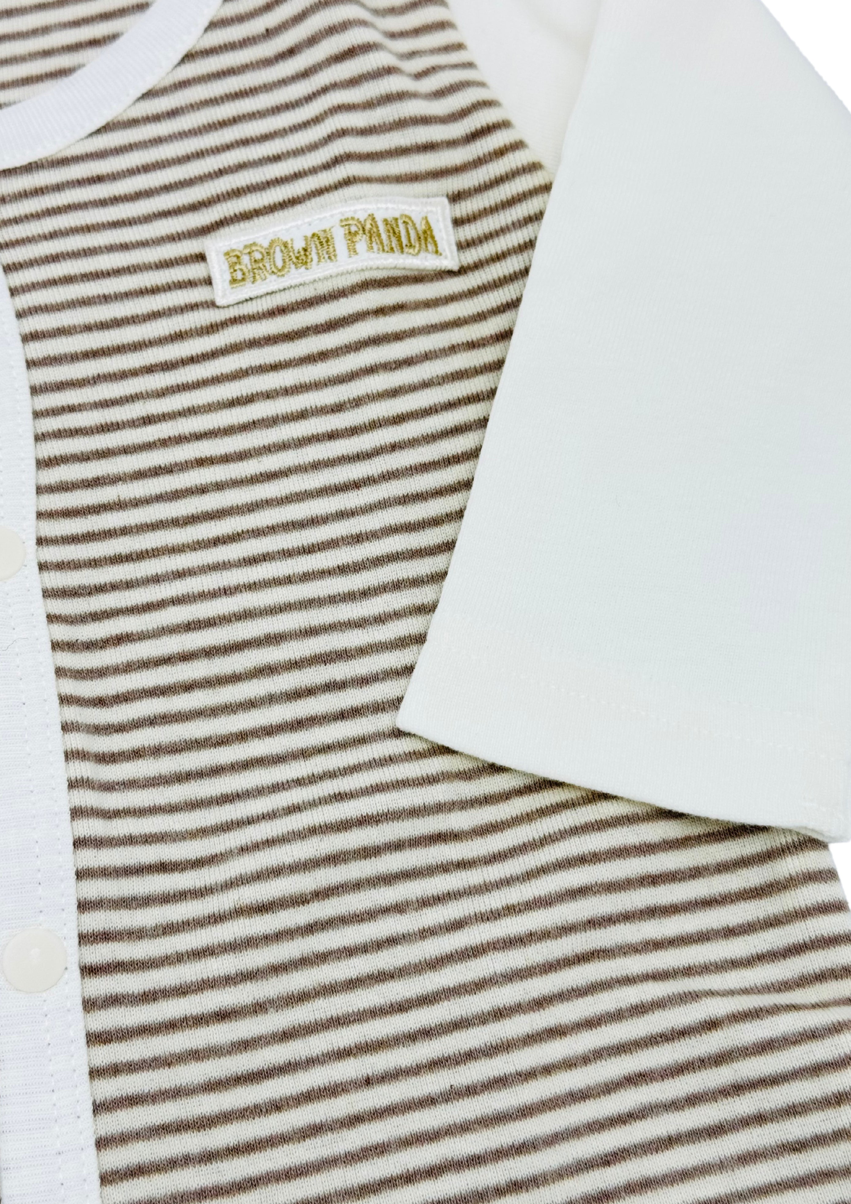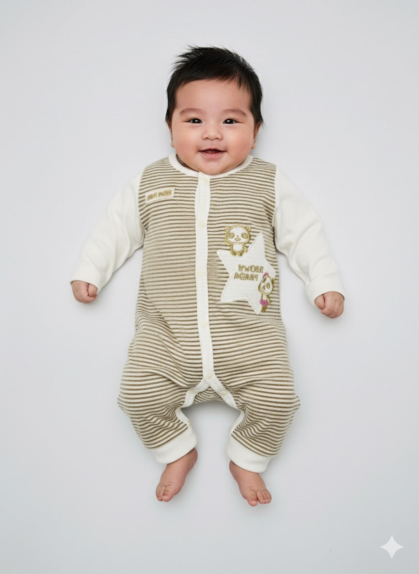 Introducing the Panda Stripped Romper - a stylish and practical choice for your little one this autumn and winter. Made from 100% pure, thick cotton, this romper offers easy and breathable comfort for your baby. Perfect for both baby boys and girls aged 0-3 months.