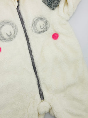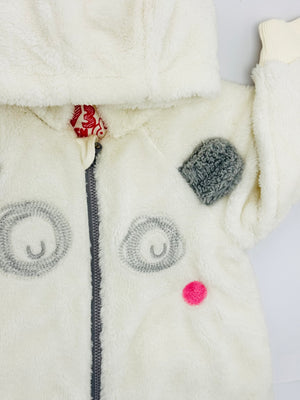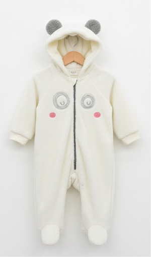 The Polar Plush Romper is a high-quality romper from Korean brand Malimarihome. Made with premium materials, this white romper boasts a full, warm and furry design for ultimate comfort and style. Stay cozy and fashionable with this must-have winter essential.