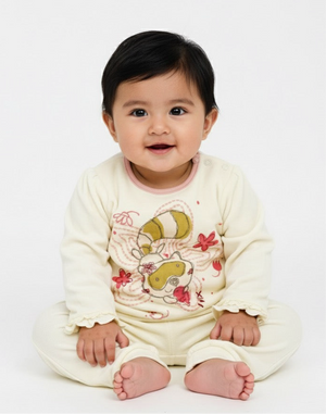 • Design Features: Adorable embroidered butterfly and floral details, pink trim around the neck