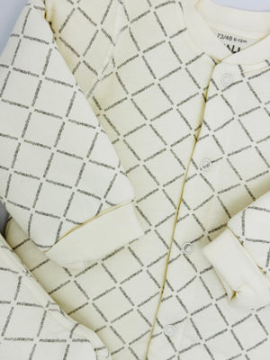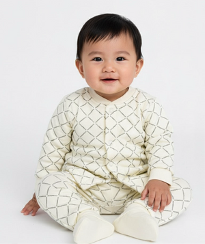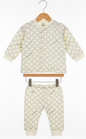 Introducing the epitome of infant comfort and style from Malimarihome, exclusively available at Bunny's Button. This luxurious two-piece lounge set, featuring a sophisticated diamond lattice print, is meticulously crafted from the softest, most breathable fabric to ensure your little one enjoys supreme comfort day and night. Designed for effortless dressing and maximum coziness, it's an indispensable addition to any discerning parent's baby wardrobe.
